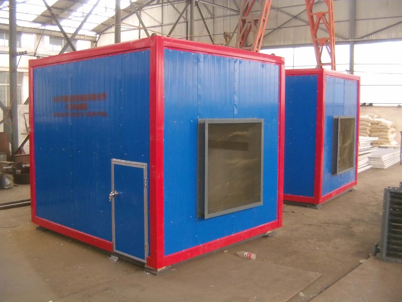 工作原理:以爐膛內煤炭、秸稈或其他形式的余熱為熱源,將熱風引入散熱管內,將外界進來的冷空氣通過空氣箱內換熱管組成的截面,使空氣加熱以一定的流速進入烘干設備。